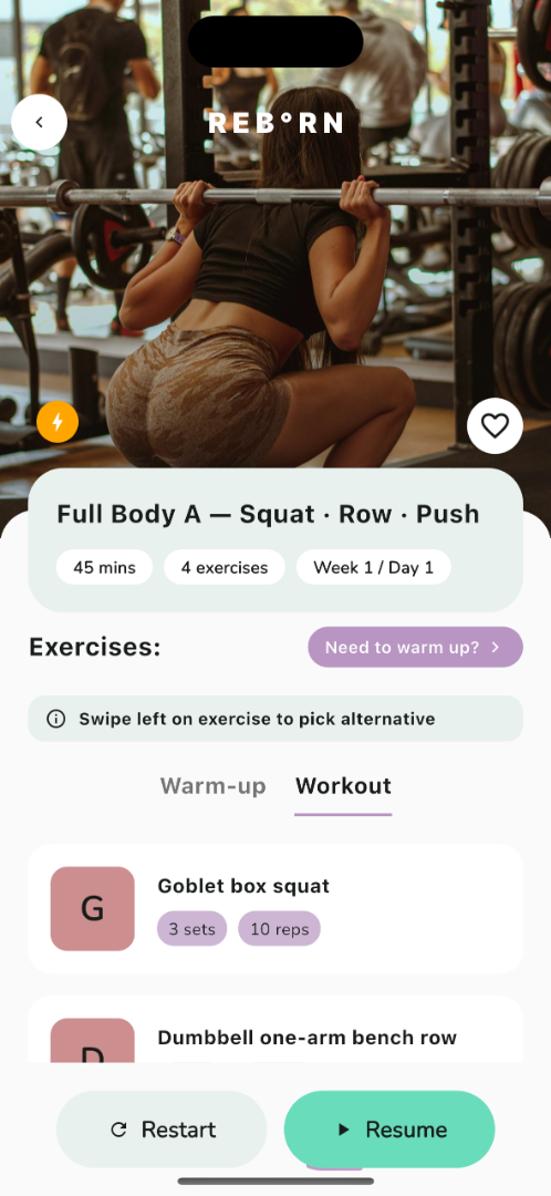 REB°RN turns every workout into a clear, guided and adaptable experience.